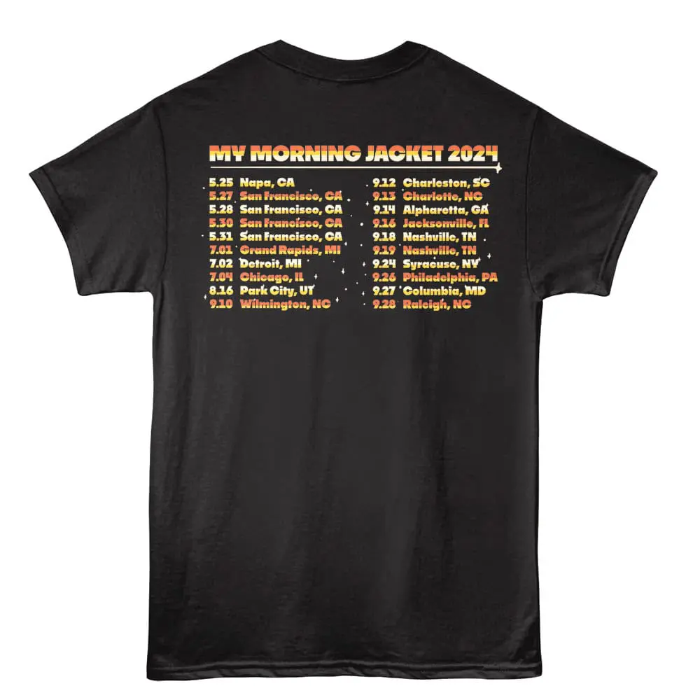 Since bursting onto the scene in the late 1990s, My Morning Jacket have been celebrated for their electrifying live shows and genre-blending sound. From Southern rock roots to sprawling psychedelic jams, Jim James and the band craft music that moves audiences both physically and emotionally. With albums like Z and Circuital, My Morning Jacket has solidified their place as one of the most innovative modern rock bands. Whether in intimate venues or massive festivals, MMJ’s live performances transport fans to another world. Feel the energy every day with this My Morning Jacket Tour 24 T-Shirt, designed to capture the band’s dreamy, experimental spirit.