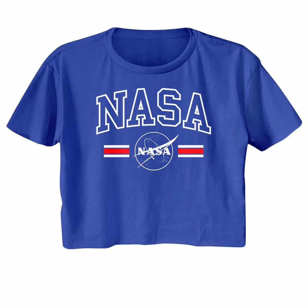 Do we really have to describe NASA to you? The modern day Space explorers trying to go where no man has ever gone before. Ok, lets be all official, the National Aeronautics and Space Administration (NASA) is an independent agency of the U.S. federal government established in 1958, responsible for the civilian space program, as well as aeronautics and space research. They captured our imagination by winning the Space race and putting a man on the moon (they did) with the Apollo missions, they developed the Skylab space station and the Space Shuttle. If you loved space since you were a kid, bring out your inner astronaut in this awesome futuristic NASA Retro Stripes Crop Top.
