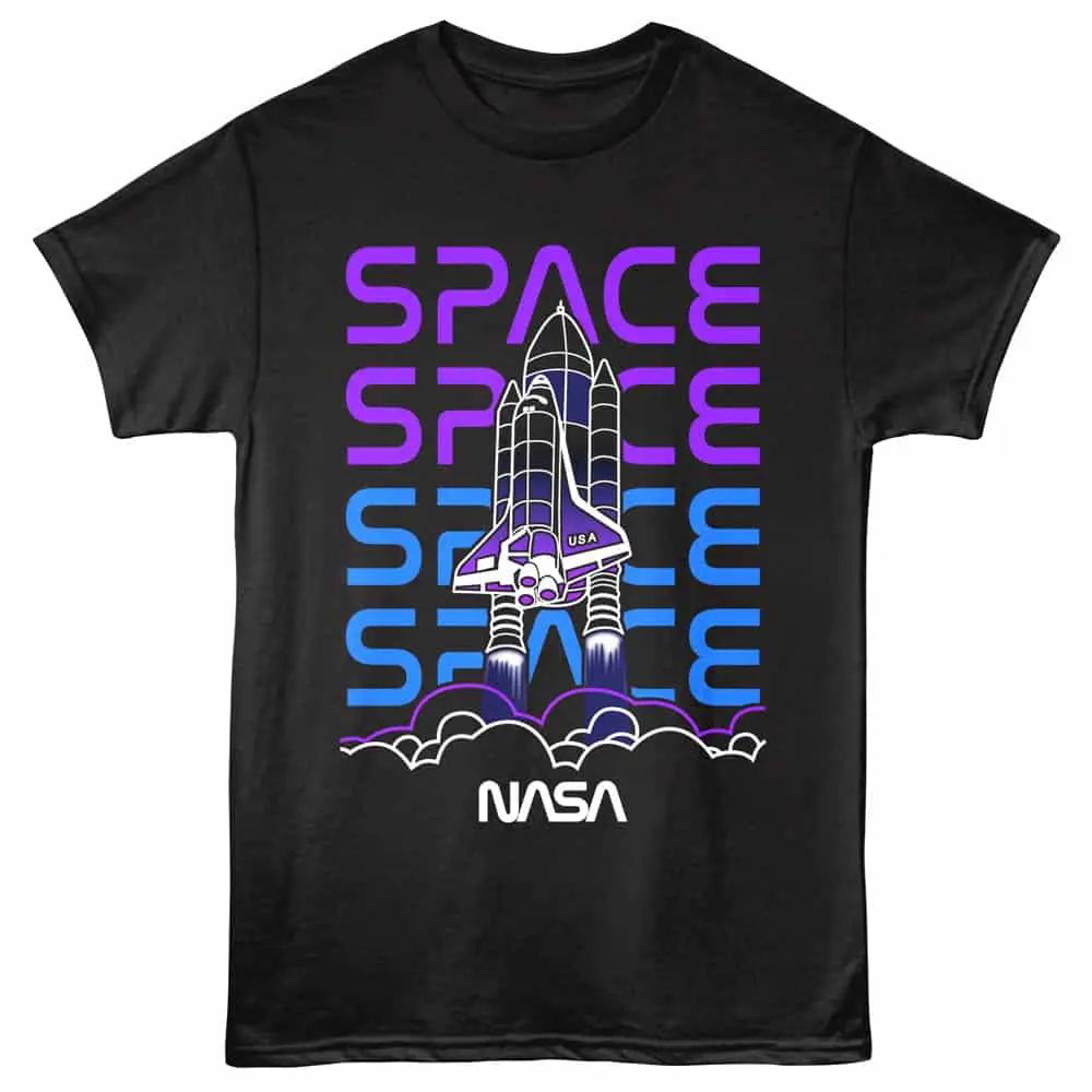 Do we really have to describe NASA to you? The modern day Space explorers trying to go where no man has ever gone before. Ok, lets be all official, the National Aeronautics and Space Administration (NASA) is an independent agency of the U.S. federal government established in 1958, responsible for the civilian space program, as well as aeronautics and space research. They captured our imagination by winning the Space race and putting a man on the moon (they did) with the Apollo missions, they developed the Skylab space station and the Space Shuttle. If you loved space since you were a kid, bring out your inner astronaut in this awesome futuristic NASA Shuttle Space Blast-Off T-Shirt.
