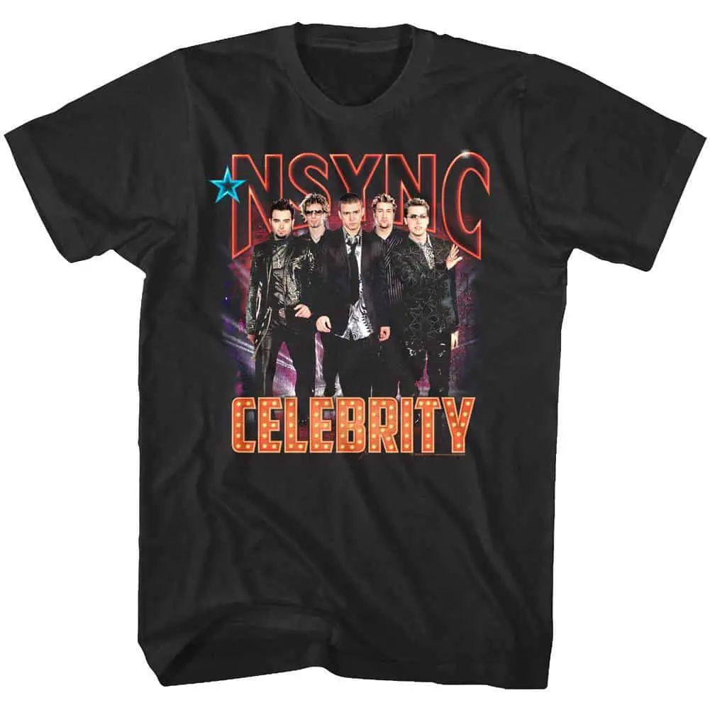 Leaders of the slick dance-pop boy bands in the early 00’s (the noughties?), NSYNC had the world at their feet. The name *NSYNC comes from the last letter of the first name of each original band member: Justin Timberlake, JC Chasez, Chris Kirkpatrick, Joey Fatone, Lance Bass. Nearly a decade of record-shattering worldwide sales, packed-out international stadium tours and 3 albums of unparalleled pop brilliance, *NSYNC took a hiatus in 2004. They have only performed a handful or times together since so grab a chance to see them if you can before it’s Bye bye bye forever! If you were a 90’s kid or simply love JT then this NSYNC Celebrity T-Shirt should make you scream with excitement!