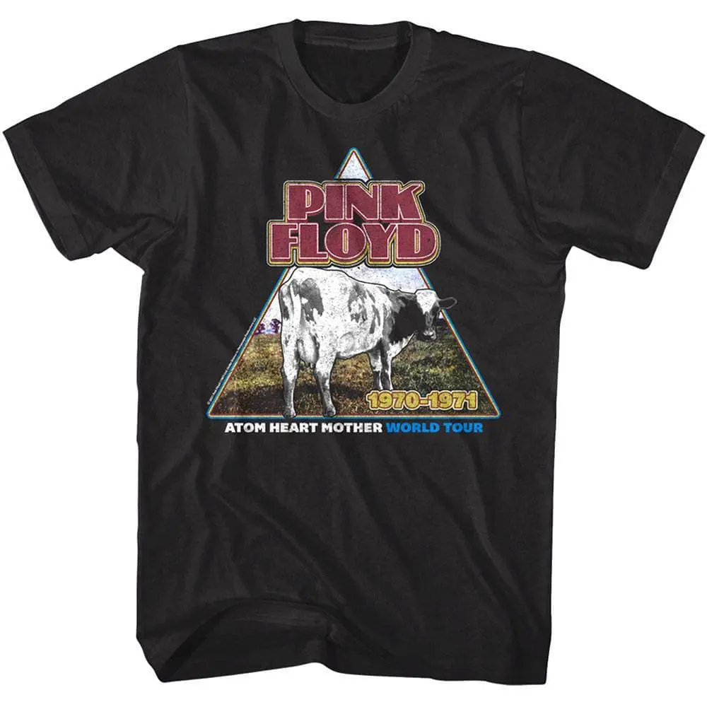 The legendary Pink Floyd are one of the creators British psychedelia, some would say the inventors of progressive rock, plus they sold over 250 million albums worldwide. Founded in London in 1965, Pink Floyd is famous for their distinct sound and songs with message. Pink Floyd are so influential that Dark Side of the Moon and The Wall are 2 of the bestselling albums of all time. Their psychedelic vibe (and lyrics) inspired some incredible artwork which you can now wear, this Pink Floyd Atom Heart Mother World Tour 1971 T-Shirt is a vintage style print with a faded look as if you bought it at the concert back in the old days.