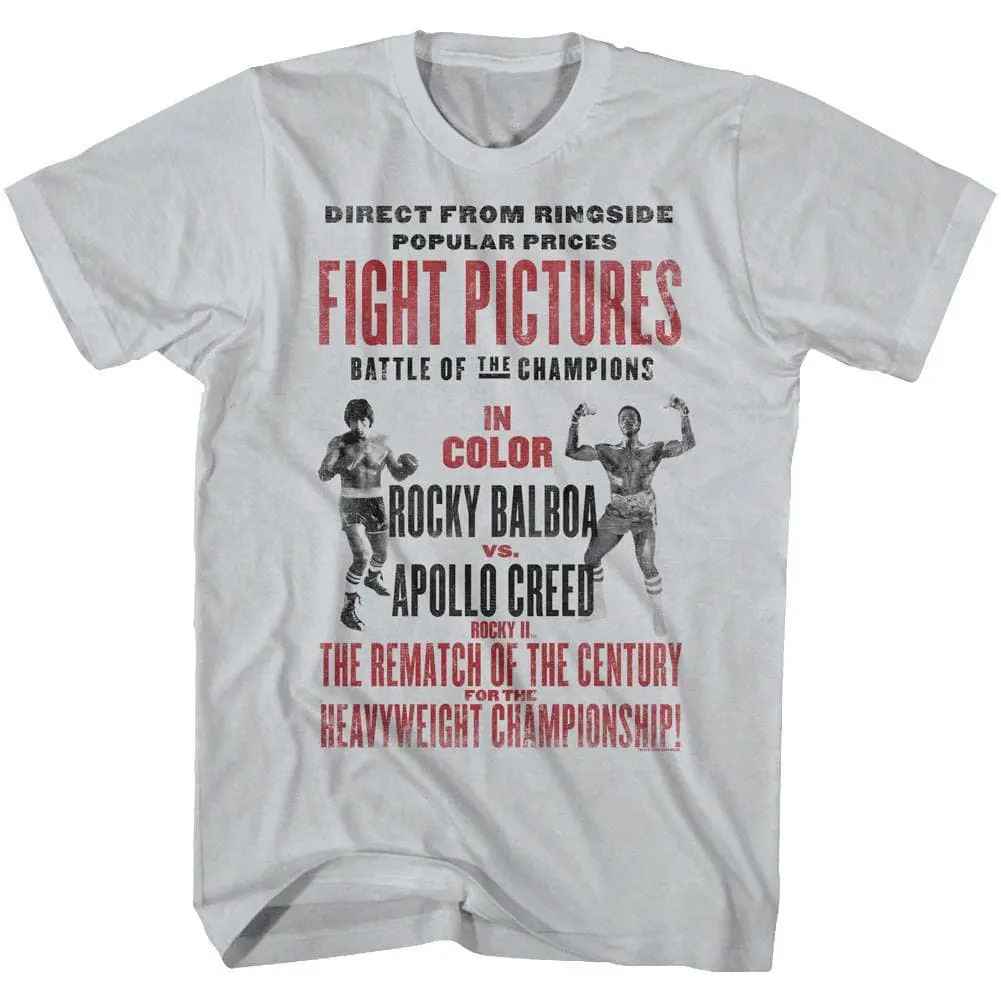 The greatest boxing movie franchise in film history! There are 6 movies following Rocky Balboa (played by Sylvester Stallone) fighting his way up from the streets to the big time. This is followed by the Rocky Creed movies, where Rocky becomes coach and mentor to Adonis Creed (the son of nemesis Apollo Creed). The original 6 movies were mostly written and directed by Sly Stallone himself. Legendary movies, memorable characters, invoke the heroic strength of Rocky Balboa with this inspirational boxing Rocky Balboa v Apollo Creed Fight Pictures t-shirt