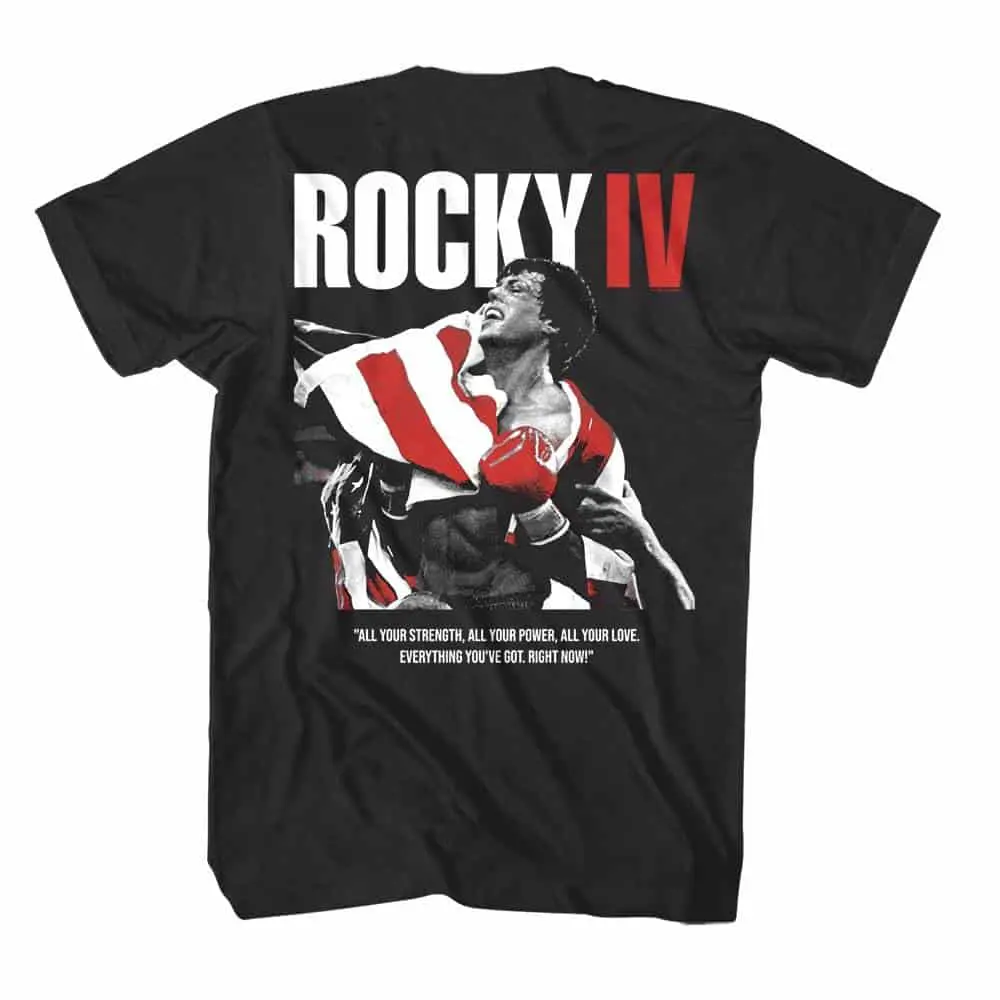 The greatest boxing movie franchise in film history! There are 6 movies following Rocky Balboa (played by Sylvester Stallone) fighting his way up from the streets to the big time. This is followed by the Rocky Creed movies, where Rocky becomes coach and mentor to Adonis Creed (the son of nemesis Apollo Creed from Rocky 1-4). The opposing boxers became notorious heels themselves like Mr. T’s ultra-violent Clubber Lang and the unstoppable Russian, Ivan Drago. The original 6 movies were mostly written and directed by Sly Stallone himself. Legendary movies, memorable characters, invoke the heroic strength of Rocky Balboa with this inspirational boxing Rocky IV All Your Strength t-shirt and you’ll always have Mighty Mick in your corner.