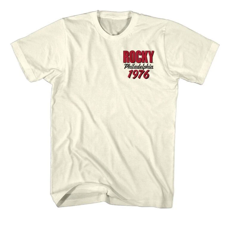 The greatest boxing movie franchise in film history! There are 6 movies following Rocky Balboa (played by Sylvester Stallone) fighting his way up from the streets to the big time. This is followed by the Rocky Creed movies, where Rocky becomes coach and mentor to Adonis Creed (the son of nemesis Apollo Creed from Rocky 1-4). The opposing boxers became notorious heels themselves like Mr. T’s ultra-violent Clubber Lang and the unstoppable Russian, Ivan Drago. The original 6 movies were mostly written and directed by Sly Stallone himself. Legendary movies, memorable characters, invoke the heroic strength of Rocky Balboa with this inspirational boxing Rocky One Step At A Time t-shirt and you’ll always have Mighty Mick in your corner.