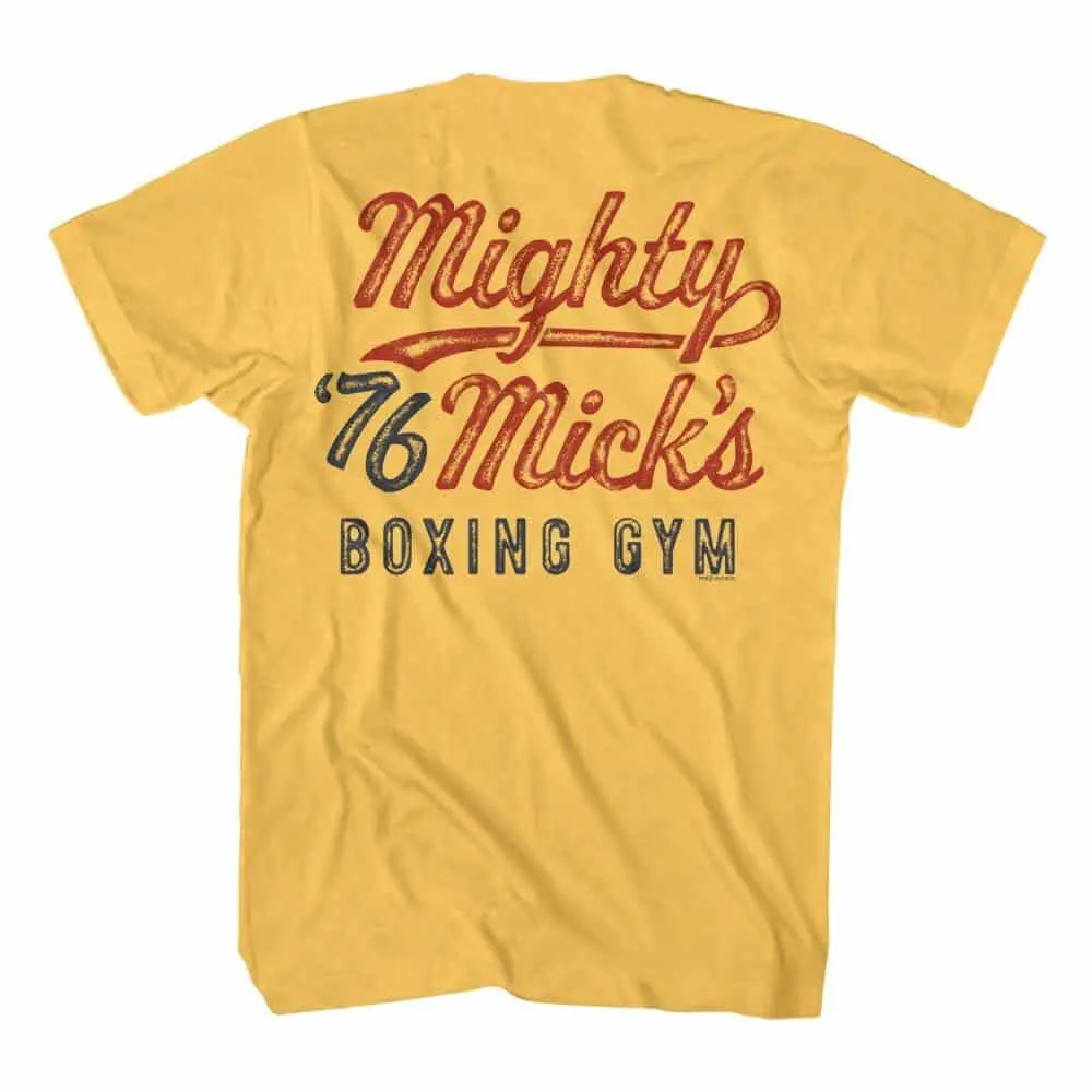 The greatest boxing movie franchise in film history! There are 6 movies following Rocky Balboa (played by Sylvester Stallone) fighting his way up from the streets to the big time. This is followed by the Rocky Creed movies, where Rocky becomes coach and mentor to Adonis Creed (the son of nemesis Apollo Creed from Rocky 1-4). The opposing boxers became notorious heels themselves like Mr. T’s ultra-violent Clubber Lang and the unstoppable Russian, Ivan Drago. The original 6 movies were mostly written and directed by Sly Stallone himself. Legendary movies, memorable characters, invoke the heroic strength of Rocky Balboa with this inspirational boxing Rocky Philly 1976 Mighty Mick’s Boxing Gym t-shirt and you’ll always have Mighty Mick in your corner.