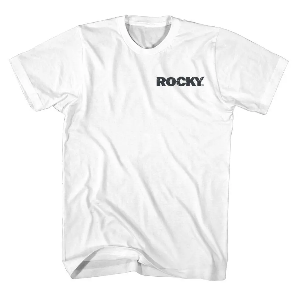 The greatest boxing movie franchise in film history! There are 6 movies following Rocky Balboa (played by Sylvester Stallone) fighting his way up from the streets to the big time. This is followed by the Rocky Creed movies, where Rocky becomes coach and mentor to Adonis Creed (the son of nemesis Apollo Creed from Rocky 1-4). The opposing boxers became notorious heels themselves like Mr. T’s ultra-violent Clubber Lang and the unstoppable Russian, Ivan Drago. The original 6 movies were mostly written and directed by Sly Stallone himself. Legendary movies, memorable characters, invoke the heroic strength of Rocky Balboa with this inspirational boxing Rocky Victory in the Park t-shirt and you’ll always have Mighty Mick in your corner.