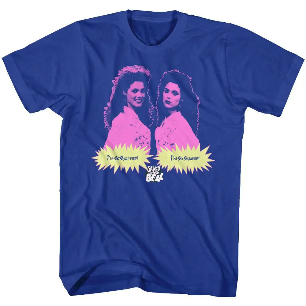 “When I wake up in the morning and the alarm gives out a warning – it’s alright because we’re Saved by the Bell“. SBTB is an Epic 90’s TV sitcom about a group of six close friends trying to make it through their teens while attending Bayside High School in California. Saved by the Bell shows daily trials of teens (and their principal) focusing on social issues affecting youngsters. Whether you relate to preppy Zack Morris or the cheerleading beauty Kelly Kapowski, or the jock QB AC Slater, or the class nerd Screech – this awesome graphic Saved by the Bell Jessie Spano Moods t-shirt will make you fit right in at Bayside High School!