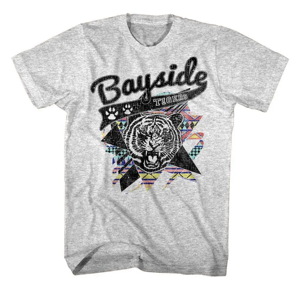 “When I wake up in the morning and the alarm gives out a warning – it’s alright because we’re Saved by the Bell“. SBTB is an Epic 90’s TV sitcom about a group of six close friends trying to make it through their teens while attending Bayside High School in California. Saved by the Bell shows daily trials of teens (and their principal) focusing on social issues affecting youngsters. Whether you relate to preppy Zack Morris or the cheerleading beauty Kelly Kapowski, or the jock QB AC Slater, or the class nerd Screech – this awesome graphic Saved by the Bell Tribal Tigers t-shirt will make you fit right in at Bayside High School!