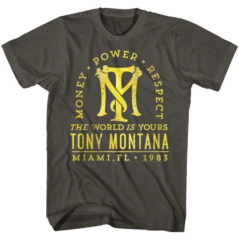 THE definition of cult classic, the 1983 version of Scarface saw Al Pacino‘s iconic role as Tony Montana the Cuban refugee in 80’s Miami. This movie inspired a generation, the rags to riches story in the crime-ridden underbelly of the drug world in Miami is critically acclaimed and hugely popular still to this day – still a very quoted movie 40 years on! As Pacino became a hollywood heavyweight, Scarface got cooler as it got older, spawning rap songs, comic books, graphic t-shirts and another remake. This 80’s inspired Scarface Tony Montana Miami 1983 t-shirt is vintage style as if you got it from Tony Montana himself, mang. So… say goodnight to the bad guy.