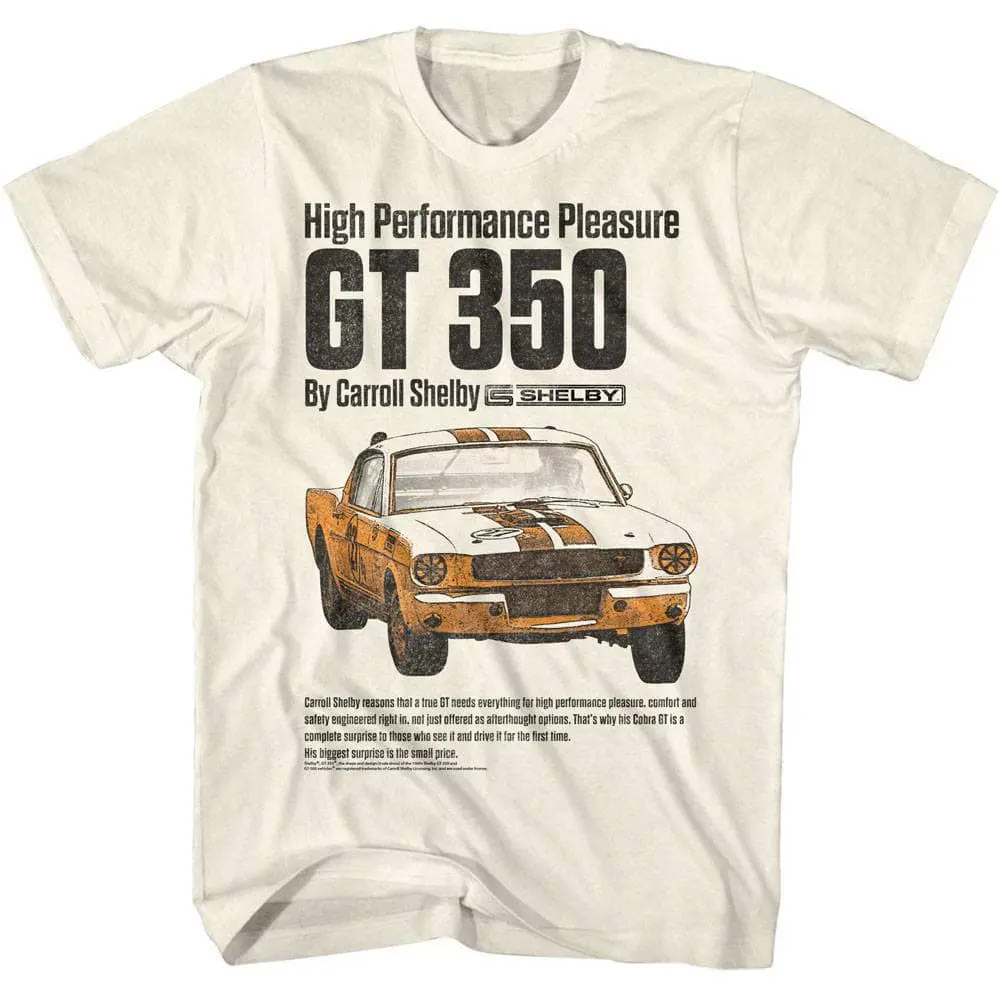In short, Carroll Shelby was a designer of iconic sports cars, but he was so much more than that, his influence has shaped the unique Shelby Cobra and Ford Mustang – and the car racing world as a whole. The Shelby Cobra concept is a roadster inspired by the original AC Cobra that AC Cars developed in 1961, and Anglo-American racing car distinctive for its distinct nose and bold racing stripes. The automotive legend that was Carroll Shelby was a car designer with the midas touch – every vehicle looked iconic. So iconic that Shelby is portrayed by Matt Damon in the Hollywood movie Ford v. Ferrari For real gearheads, this Shelby High Performance Pleasure GT 350 T-Shirt has a vintage-style print with a distressed look as if you bought it at raceway in the 70’s.