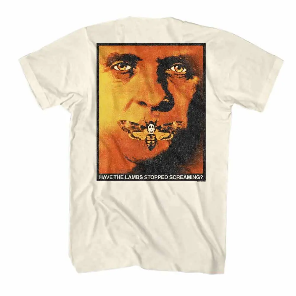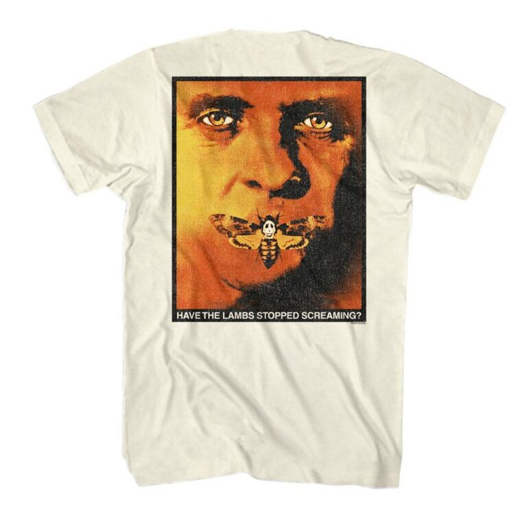 Audiences and media regularly claim that Silence of the Lambs is one of the most influential films of all time. Silence of the Lambs is a 1991 psychological horror / thriller film adapted from the novel of the same name. In the film, Clarice Starling (Jodie Foster), a young FBI trainee, seeks the advice of the incarcerated Dr. Hannibal Lecter (Anthony Hopkins). He’s a brilliant psychiatrist but also cannibalistic serial killer, and she needs his help to apprehend another serial killer, known only as “Buffalo Bill“, who skins his female victims’ corpses. Silence of the Lambs was such a huge success both financially and critically, it remains the only Horror movie to win the Oscar for Best Picture. Horror fans should enjoy this twisted Silence of the Lambs Screaming Moth T-Shirt as it goes well with a nice chianti…