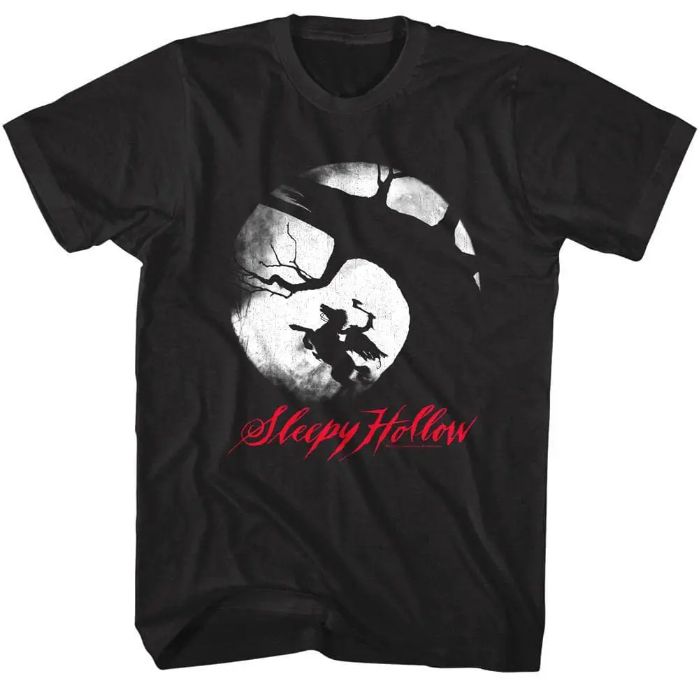 Tim Burton’s 1999 gothic, supernatural horror movie, Sleepy Hollow, starring Johnny Depp and Christina Ricci. The plot follows police constable Ichabod Crane (Depp) sent from New York City to investigate a series of murders in the village of Sleepy Hollow by a mysterious Headless Horseman. Although not intended for commercial release, Johnny Depp and Tim Burton’s involvement increased expectations and was a box office hit as well as award-winning. The dark gothic colors and vintage finish of this Sleepy Hollow Headless Horseman t-shirt makes you look dark and brooding.