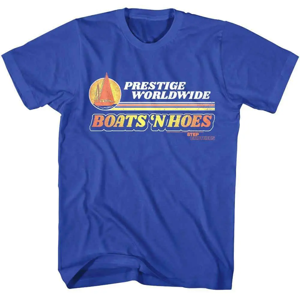 If you are a Will Ferrell fan I don’t need to explain Step Brothers to you. Brennan Huff (Ferrell) lives with his divorced mother and Dale Doback (John C. Reilly) lives with his widowed father. When their parents meet and marry, they move in together and become Step Brothers and eventually best friends! Step Brothers is another Adam McKay movie (like Anchorman and Talladega Nights) it grossed over $130 million at the box office and gained a huge cult following. So if you think that we just became best friends then you will love this epic Step Brothers Prestige Worldwide Boats ‘n T-Shirt.