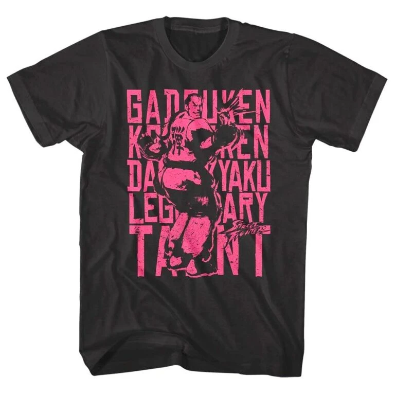 If you played arcade games in the 90’s then you had a Street Fighter character, you knew their combo moves and their backstory. This fighting video game series developed by Capcom changed the gaming industry. Since the release of the first Street Fighter game in 1987 the series had sales of more than 1$ billion qualifying it for the list of best selling video game franchises of all time. So whether you are a Ryu, Ken, Chun-Li, Guile or Blanka then we have an officially licensed Street Fighter 2 Dan Legendary Taunt t-shirt just for you.