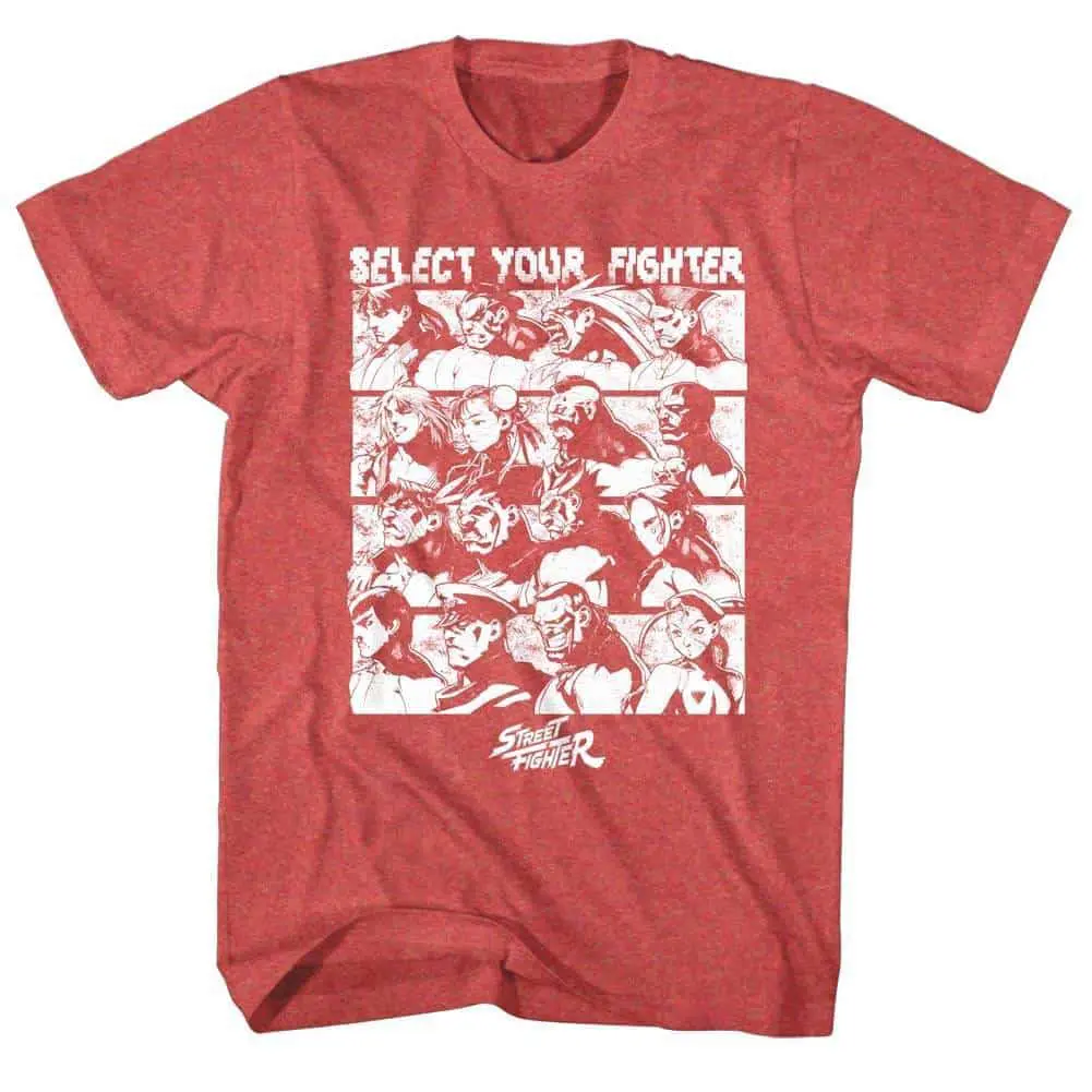 If you played arcade games in the 90’s then you had a Street Fighter character, you knew their combo moves and their backstory. This fighting video game series developed by Capcom changed the gaming industry. Since the release of the first Street Fighter game in 1987 the series had sales of more than 1$ billion qualifying it for the list of best selling video game franchises of all time. So whether you are a Ryu, Ken, Chun-Li, Guile or Blanka then we have an officially licensed Street Fighter 2 Player Select t-shirt just for you.