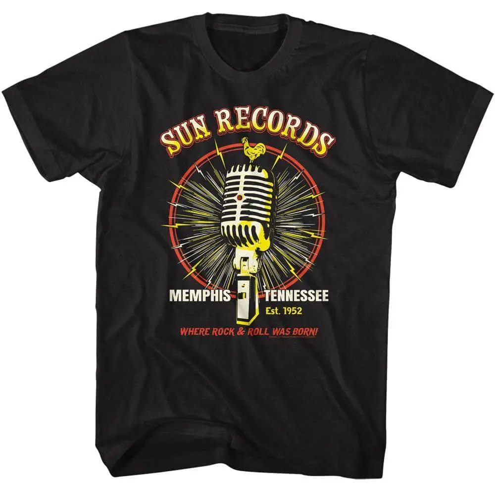 Sun Records is an American independent record label founded by producer Sam Phillips in Memphis, Tennessee back in February 1952. They gained their reputation by unearthing some musical royalty. In fact Sun Records call themselves “Where Rock and Roll was Born” because they were the first label to record Elvis Presley, Charlie Rich, Roy Orbison, Jerry Lee Lewis, Carl Perkins, and Johnny Cash. Sun boast the famous photograph of the Million Dollar Quartet – Carl Perkins, Johnny Cash and Jerry Lee Lewis grouped round Elvis Presley at the piano, the night when the four joined in an impromptu jam at Sun Records’ one-room sound studio in December 1956. This old-school Sun Records Microphone Burst T-shirt has a distressed print to look as if you bought it at a gig in the 60’s.