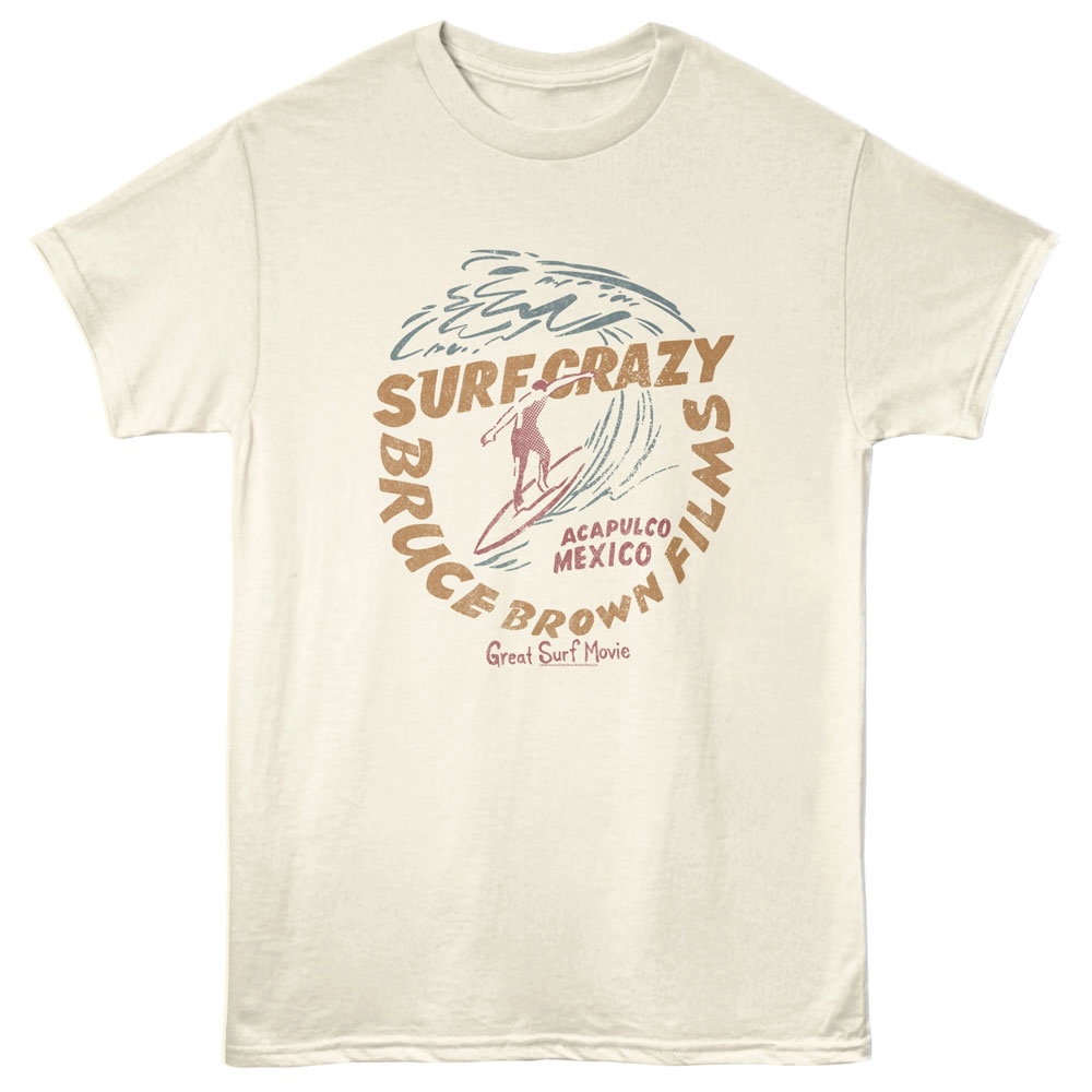 The Endless Summer wasn’t the only classic by Bruce Brown Films. Bruce Brown travelled all over the world to the coasts of Australia, New Zealand, Tahiti, Hawaii, Senegal, Ghana, Nigeria and South Africa in a quest to document the craziest sports on the planet. His classic movie is represented on this epic graphic Bruce Brown Films Surf Crazy Acapulco Mexico T-Shirt, designed to look vintage like it came from a surf shop in the ’60’s.