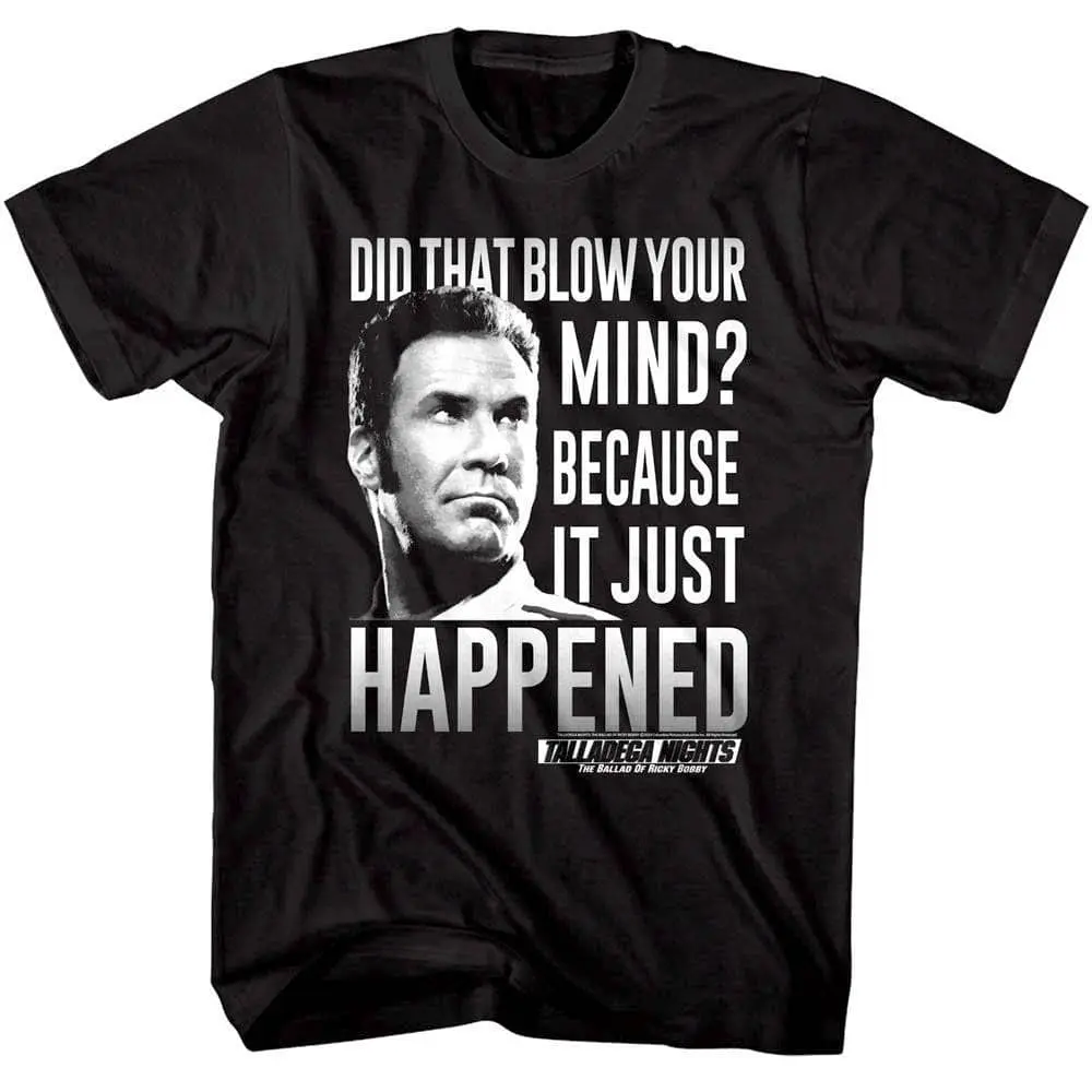 As with all Will Ferrell comedies, you have to use the movies full name Talladega Nights: the Ballad of Ricky Bobby. His comedies are so off-the-wall silly and filled with quotables that if you know this movie, you KNOW the best lines! Talladega Nights is about the career, life and love of the talented but dim NASCAR race driver Ricky Bobby and his co-driver Cal Naughton (played by John C. Reilly). Adam McKay direct this Ferrell project, yet another successful collab after Anchorman and Step Brothers. If you are a born winner, you gotta wear this graphic Talladega Nights Did That Blow Your Mind T-Shirt, because in the words of Ricky Bobby “if you ain’t first, you’re last!”