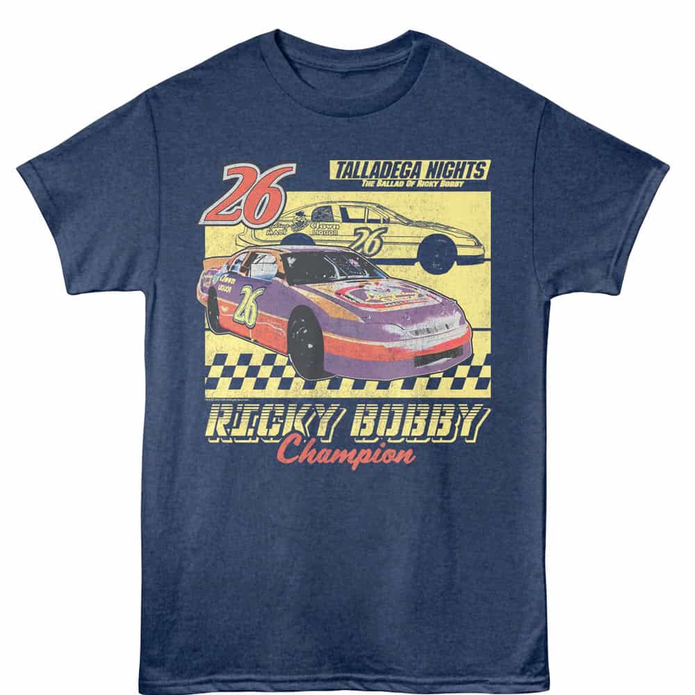 As with all Will Ferrell comedies, you have to use the movies full name Talladega Nights: the Ballad of Ricky Bobby. His comedies are so off-the-wall silly and filled with quotables that if you know this movie, you KNOW the best lines! Talladega Nights is about the career, life and love of the talented but dim NASCAR race driver Ricky Bobby and his co-driver Cal Naughton (played by John C. Reilly). Adam McKay direct this Ferrell project, yet another successful collab after Anchorman and Step Brothers. If you are a born winner, you gotta wear this graphic Talladega Nights Laughing Clown Car T-Shirt, because in the words of Ricky Bobby “if you ain’t first, you’re last!”