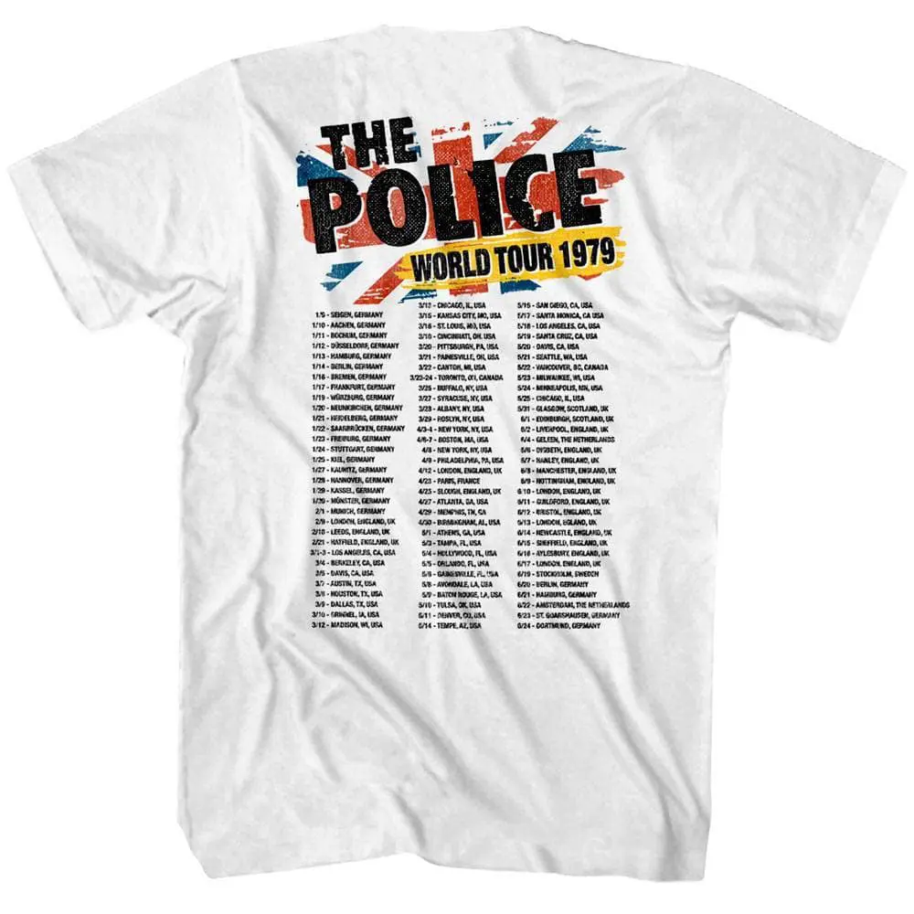In 1983 Rolling Stone labelled The Police “the first British New Wave act to break through in America on a grand scale, and possibly the biggest band in the world” – huge praise! The Police were a British rock band formed in London in 1977 who became superstars in the 80’s, lead singer Sting had a hugely successful solo career after they disbanded. Why do I call them Sting & The Police, so you can find them instead of the cops! Their unique stylings are reflected in their artwork on this retro graphic The Police Around the World Tour 1979 Men’s t-shirt the vintage style looks as if you bought it at a gig in the 80’s