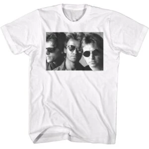 In 1983 Rolling Stone labelled The Police “the first British New Wave act to break through in America on a grand scale, and possibly the biggest band in the world” – huge praise! The Police were a British rock band formed in London in 1977 who became superstars in the 80’s, lead singer Sting had a hugely successful solo career after they disbanded. Why do I call them Sting & The Police, so you can find them instead of the cops! Their unique stylings are reflected in their artwork on this retro graphic The Police Synchronicity Album Men’s t-shirt the vintage style looks as if you bought it at a gig in the 80’s