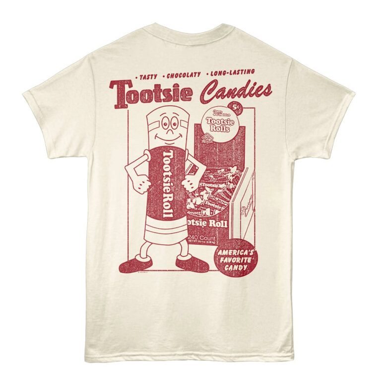 Another American candy institution – they’ve been around since 1907. A Tootsie Roll is a mildly chocolate-flavored taffy-like candy that has been around for a century. Not quite caramel, not quite taffy, not quite chocolate, and they don’t melt – a Tootsie Roll is unique. Did you know that Tootsie Roll has been mentioned in more songs than any other candy. If you grew up chewing a Tootsie Roll then you are part of the Candy Societee then this Captain Tootsie Roll Vintage Candie T-shirt is for you