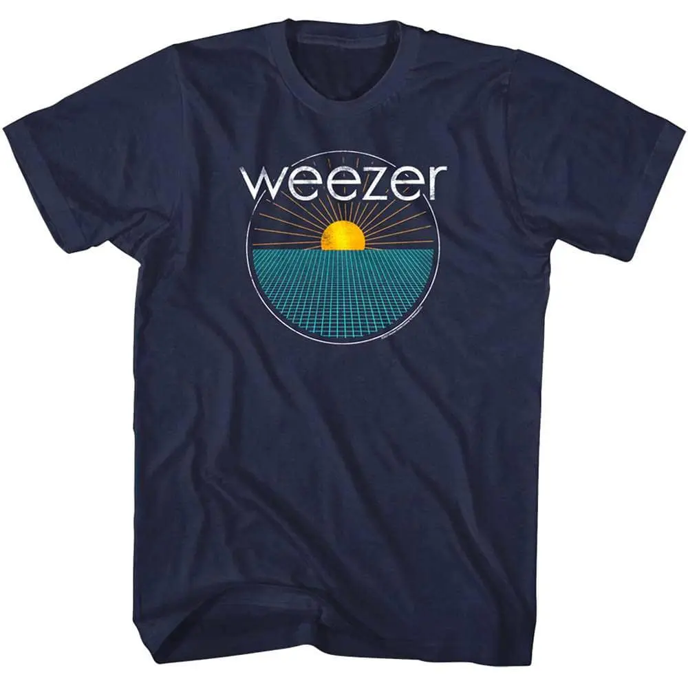 The prolific pop-rock music-machine known as Weezer fire out hits and albums at a rate that stands them above the rest. They have sold over 35 million albums worldwide from their 15 studio albums (with another on the way); with over 37 singles charting, so Weezer definitely know how to make hit single. Led by frontman Rivers Cuomo since the very beginning, their style has evolved with the times to keep them relevant. In 2019, Weezer released an album of covers (Teal Album) that is worth listening to for their alt rock versions on Pop hits. Grab this vintage-style Weezer Digital Sunset T-Shirt, it looks like it came from a gig in the ’90s.