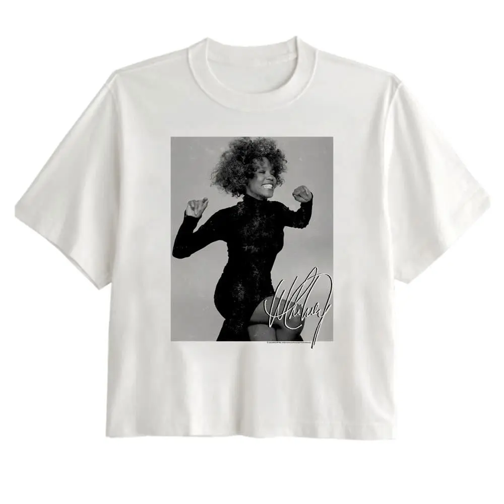 As the song goes, Whitney Houston is Every Woman! She is one of the best-selling recording artists of all time, with sales of over 200 million records worldwide. Whitney was a Pop Music Icon, mixing her powerful gospel sound with her with pop vibes and you got multiple Number 1 hits. She added to her legendary status by stepping into movies, her acting and singing was a Box Office success too (The Bodyguard her most successful). Privately, her turbulent personal life and her rocky relationship with ex-husband Bobby Brown lead to frequent drug use – this all contributed to her tragic end in 2012. Whitney’s legacy is that she will always be known for her immense vocal range and powerful ballads. If you were a 90’s kid, wear this Whitney Houston Broken Hearts Signature Crop Top as a statement with a look that says I’m from the 90’s.