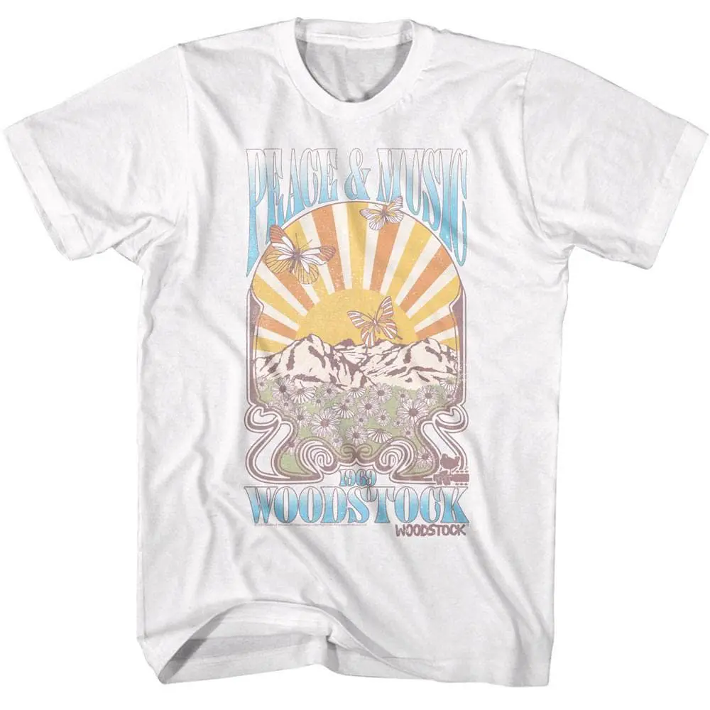 Woodstock Music and Art Fair, we know it simply as Woodstock, was a music festival held August 15–18, 1969, on Max Yasgur‘s dairy farm in Bethel, New York, – actually 40 miles southwest of the town of Woodstock. Billed as Woodstock Rock Festival “an Aquarian Exposition: 3 Days of Peace & Music”, it attracted an audience of more than 400,000 and 32 acts performed outdoors despite the rain, including legends such as The Who, Jimi Hendrix and Janis Joplin. It would go down in history as one of the defining moments in Rock Music history – a truly groundbreaking event. This vintage-esque graphic Woodstock Butterfly Mountain Sunset T-Shirt has a hippie vibe and a faded style print to look as if you bought it at THE concert.
