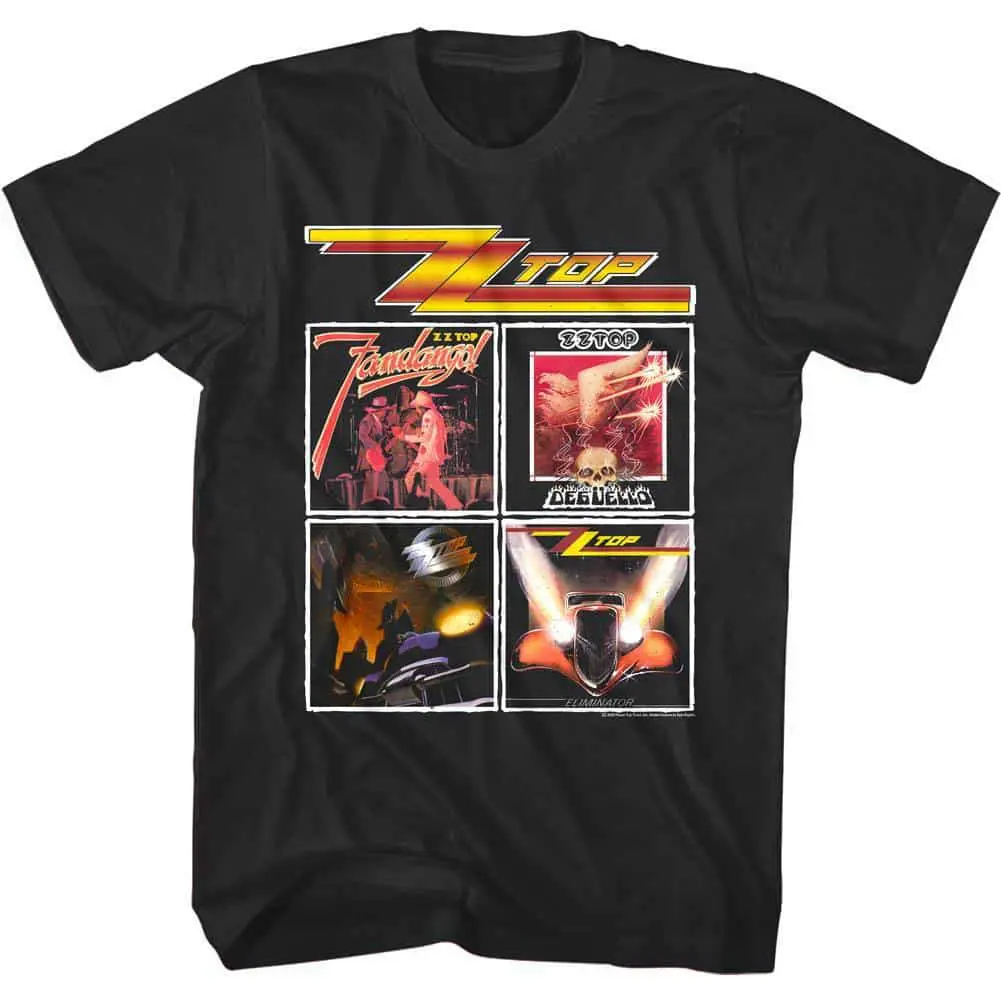 Fear the Beards! ZZ Top are Texas Blues Rock legends known for their signature look as much as their sound. Since their First Album, these Tres Hombres from Texas have been hitmakers from 1969 to La Futura. ZZ Top are loved because their songs contain funny lyrics, laced with double entendres and innuendos. After having an uninterrupted line-up since ’69, there was an enforced change with Elwood Francis joining on bass after th 2021 death of Dusty Hill. These guitar heroes have a distinct look which is reflected in this graphic ZZ Top Best Album Covers T-Shirt with a faded look as if you bought it at Rock show back in the day..